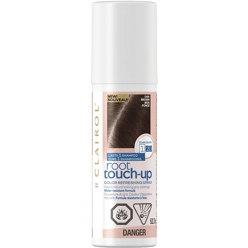 - Spray away grays in seconds with Clairol Root Touch-Up Temporary Refreshing Color Spray. Extend the life of your color with natural-looking, water-resistant gray coverage that lasts until your next shampoo. Just spray onto your roots and hairline, then go! Travel-sized spray fits in your purse or makeup bag for fast touch ups, anywhere and anytime.