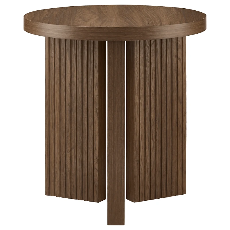Round Ribbed Wood Accent Table