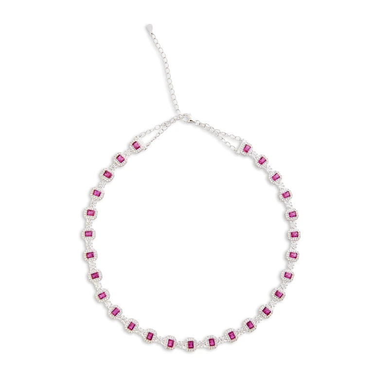 Celebrate July’s birthstone with the Ruby Emerald-Cut Necklace, featuring a stunning emerald-cut ruby as its centerpiece. Accented with round-cut white zircon stones, this necklace sparkles with timeless elegance. Crafted in 925 sterling silver and coated with rhodium, it offers a polished finish and lasting durability, making it a perfect accessory for any occasion.