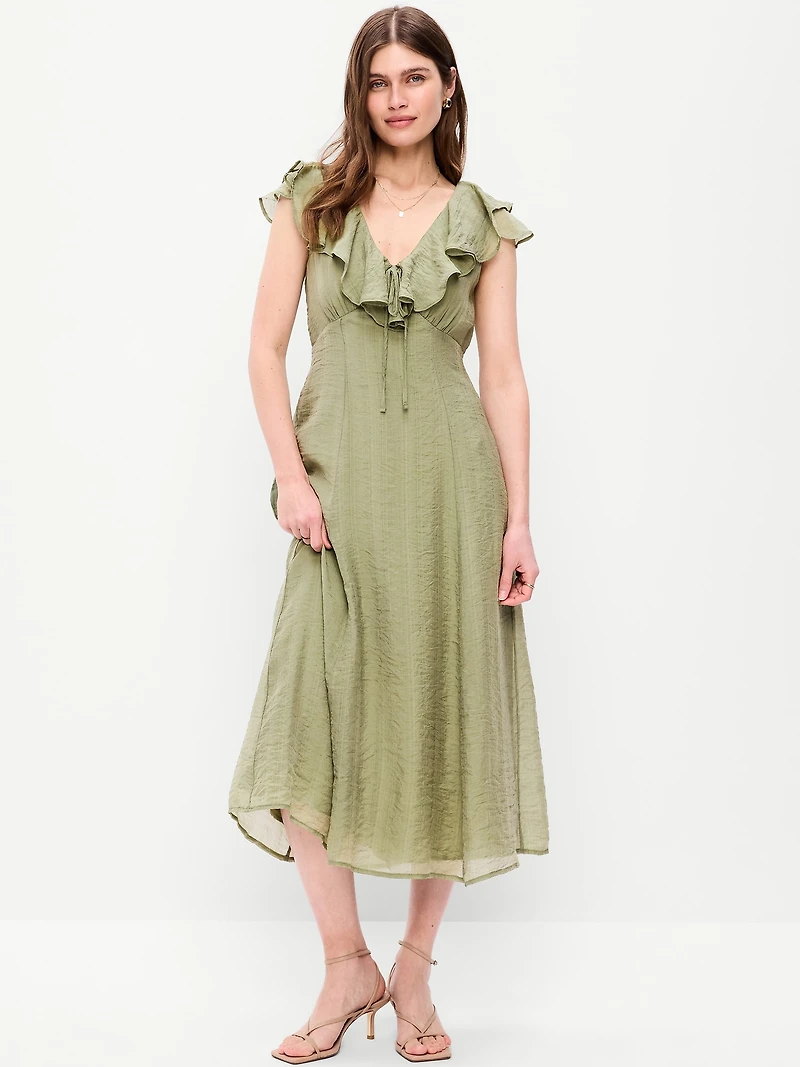 Ruffle-Sleeve Fit & Flare Midi Dress