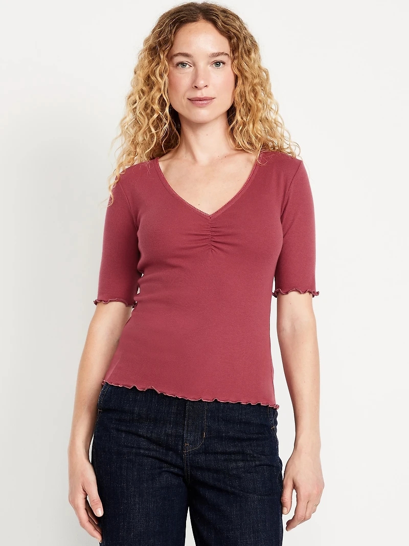 Ruffle-Trim Ribbed Top