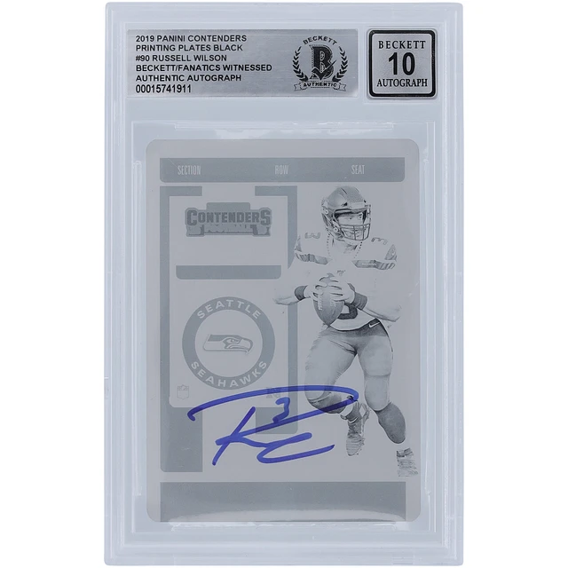 Russell Wilson Seattle Seahawks Autographed 2019 Panini Contenders Black Printing Plate #90 #1/1 Beckett Fanatics Witnessed Authenticated 10 Card
