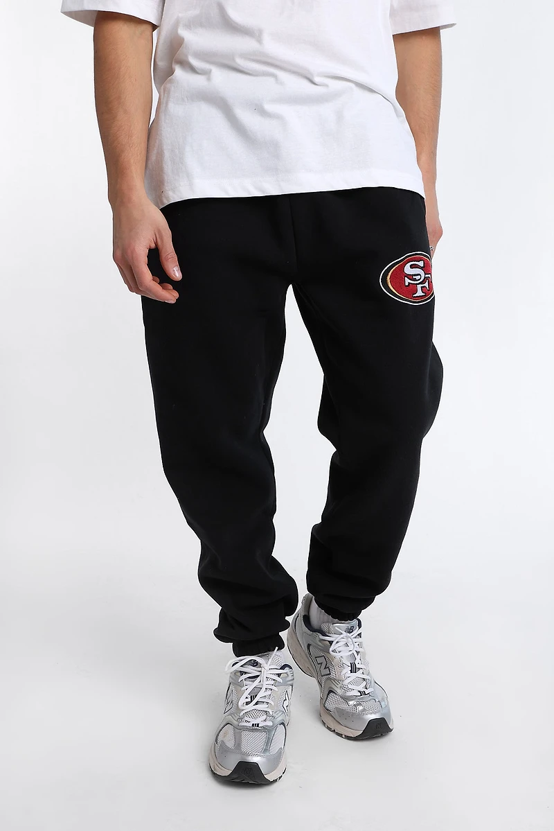 Knit fleece. Sweatpants with a relaxed fit throughout. Elastic cinch leg cuff. Embroidered graphic. Sits on waist with a 29" inseam.  Details• Knit• Fleece• Varsity collection • Embroidered patch chenille applique graphic• 2 side slant pockets • Elastic waistband• Imported• Style: 6322-2652 Fit• Sits on waist• Relaxed fit• Approx. Inseam: 29"• Model height: 6'0", wears a size: M Care & Materials• 100% Polyester• Machine wash cold. Hang to dry or tumble dry low.