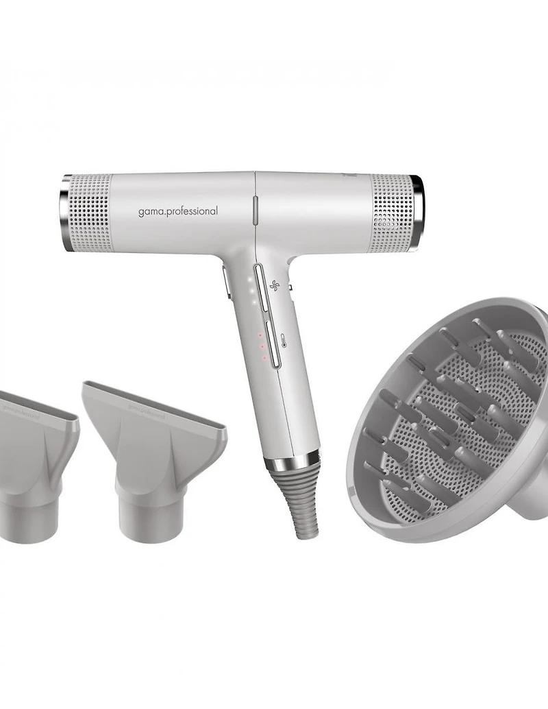 Sèche-linge Gama Professional IQ Perfetto iQ perfetto, le sèche-cheveux le plus léger, le plus puissant et le plus intelligent au monde. 294 grammes de technologie, un outil de travail essentiel, générateur de beauté et de bien-être capillaire grâce à l'ozone, conçu pour préserver l'appareil musculo-squelettique des professionnels. Un objet culte dont tout coiffeur ne peut plus se passer.