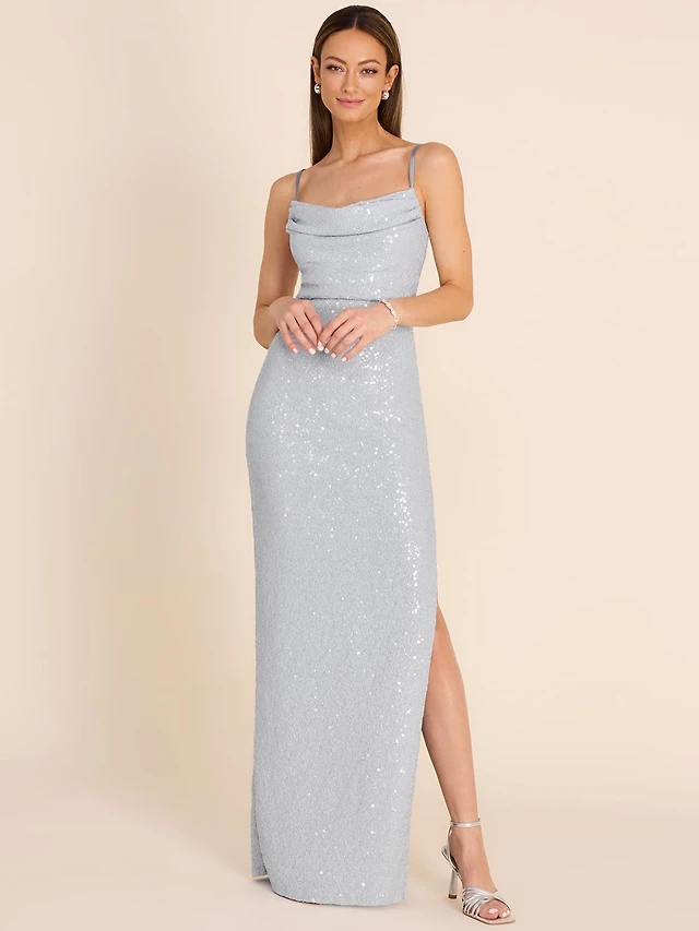 Sequin Striped Cowl Neck Sweater & Godet Insert Skirt