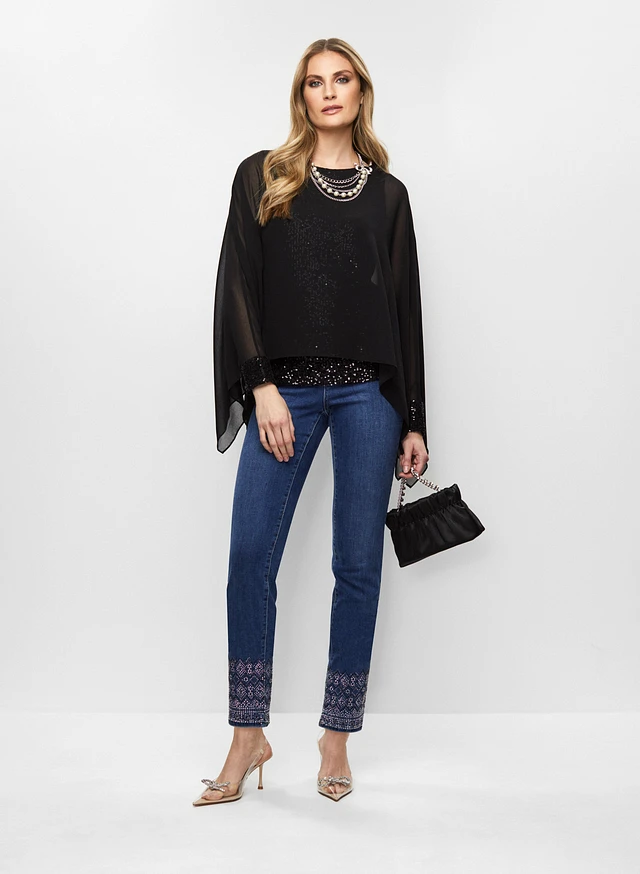 Sequinned Blouse & Embellished Jeans
