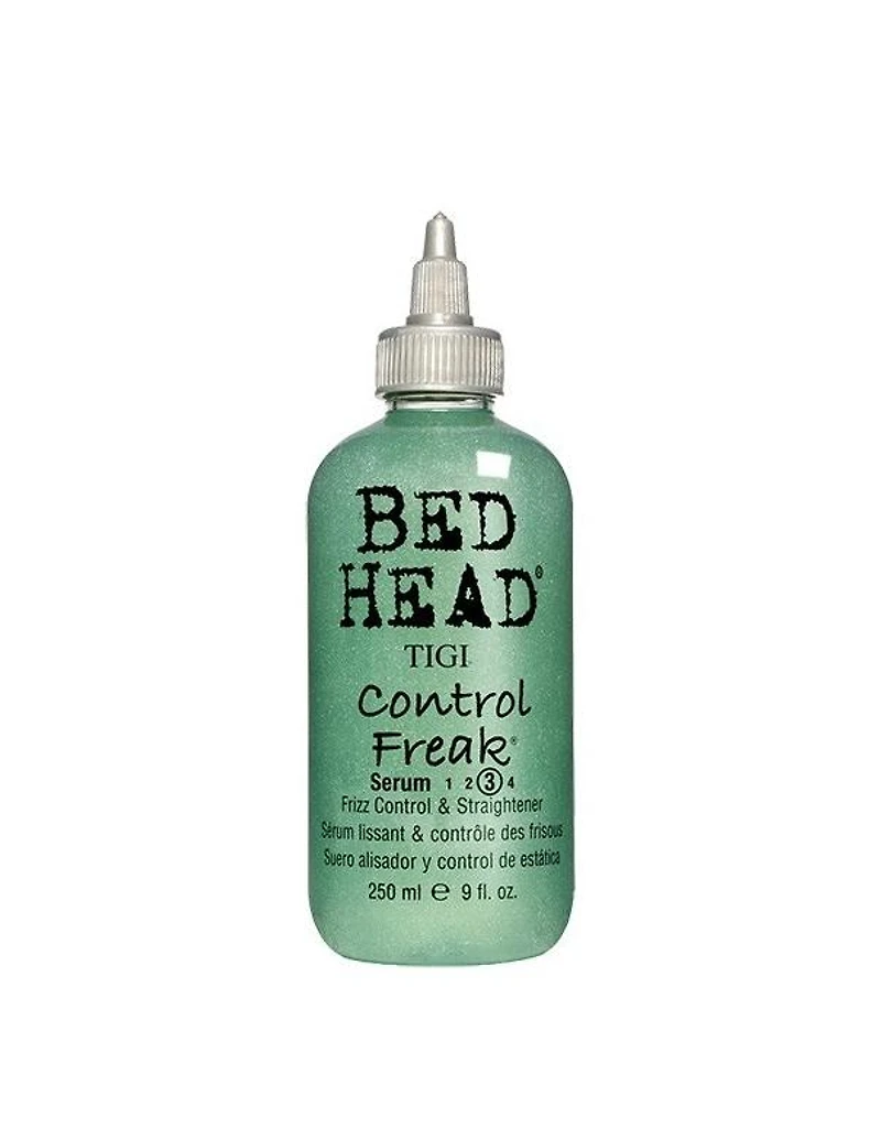 Sérum Bed Head Control Freak - 250 ml Sérum Bed Head Control Freak. Cette formule légère, non grasse et résistante à l'humidité offre un fini brillant. Revitalise et hydrate les cheveux, les scelle et leur apporte de la brillance. Agit comme un protecteur thermique. Appliquez uniformément sur cheveux humides. Utilisez une brosse ronde ou une grande brosse plate pour bien serrer vos cheveux pendant le séchage pour un fini lisse ou séchez-les comme vous le souhaitez pour des boucles et des ondulations sans frisottis.
