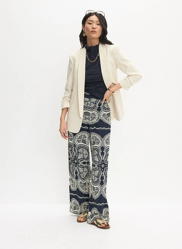 Shawl Collar Blazer & Paisley Wide-Leg Pants