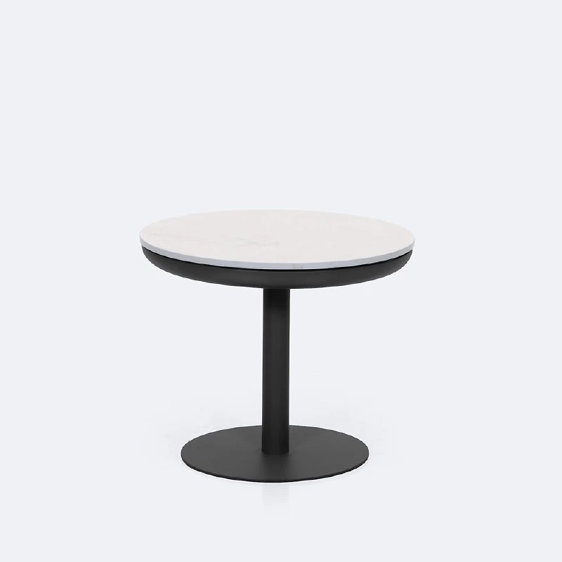 Features Rust‐resistant, aluminum frame Finished with powder coating for durability 12mm Sinter stone top Easy to clean with mild soap and water Table top features a solid top design Leg style: Pedestal / Straight Contemporary design Matches the Shay collection Coordinates with other Black frame items Product Details Frame colour: Black Frame material: Aluminum Table top material: 12mm Sinter stone top Assembly required: Yes Table height: Coffee table, Low profile Aluminum warranty: 10 year limited Sinter stone warranty: Not available Protective covers available: Yes, sold separately