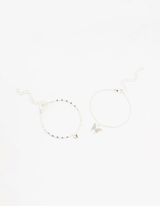 Silver Diamante Butterfly Charm Bracelets 2-Pack