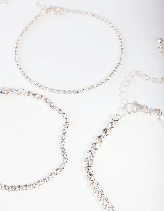 Silver Beaded Diamante Flower Charm Bracelet Pack