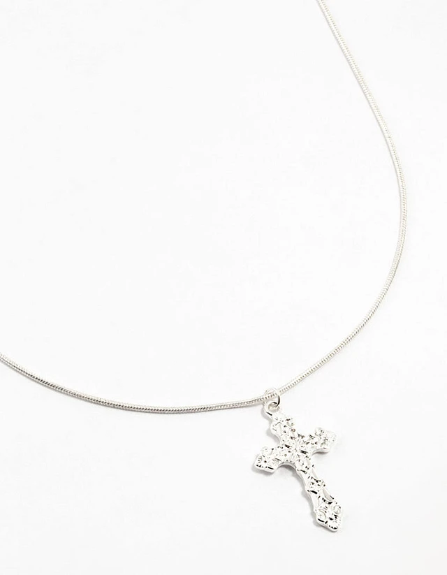Silver Plated Round Snake Chain Ornate Necklace