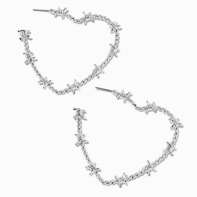 Silver-tone Barbed Wire Heart 30mm Hoop Earrings