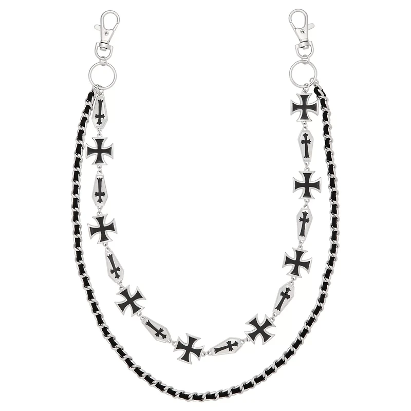 Silvertone Black Cross Layered Wallet Chain
