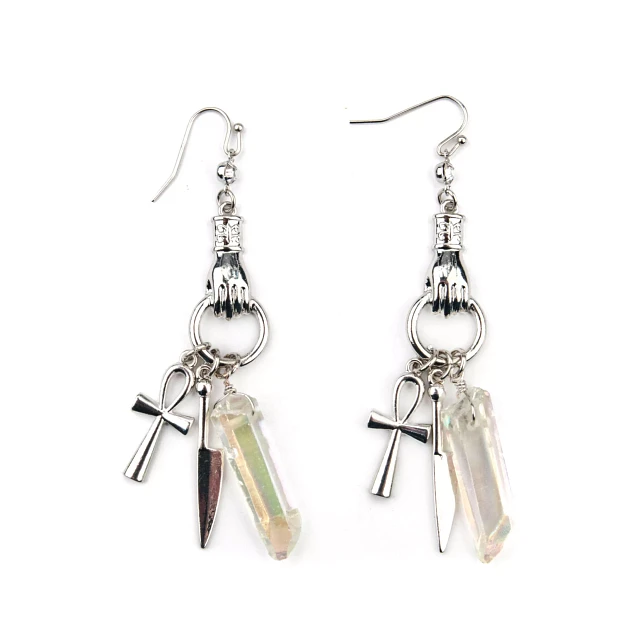 Multi-Pack Silvertone Knife Axe Hammer Weapon Dangle Earrings - 9 Pair
