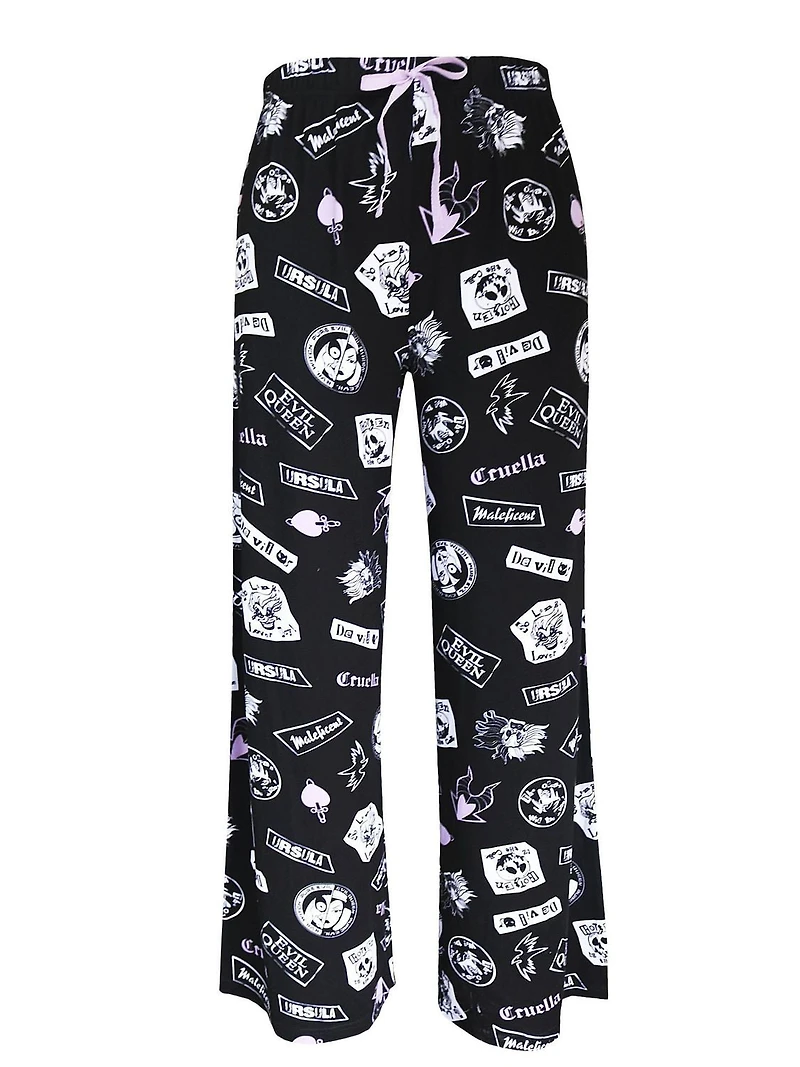 Channel your inner diva with our Ladies' Disney Villains Pajama Bottoms. Crafted from soft black fabric and adorned with a white pattern featuring your favorite villains, these pajama bottoms are both stylish and playful. The adjustable drawstring and ensure a perfectly loose fit, combining comfort with a touch of wicked charm. Perfect for lounging at home or a cozy night's sleep, these pants bring a bit of mischief to your bedtime routine. Embrace your dark side with comfort and flair in our Villains pajama bottoms!
