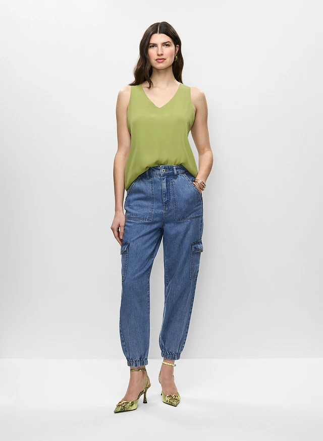 Sleeveless Leopard Print Blouse & Wide Leg Cargo Jeans