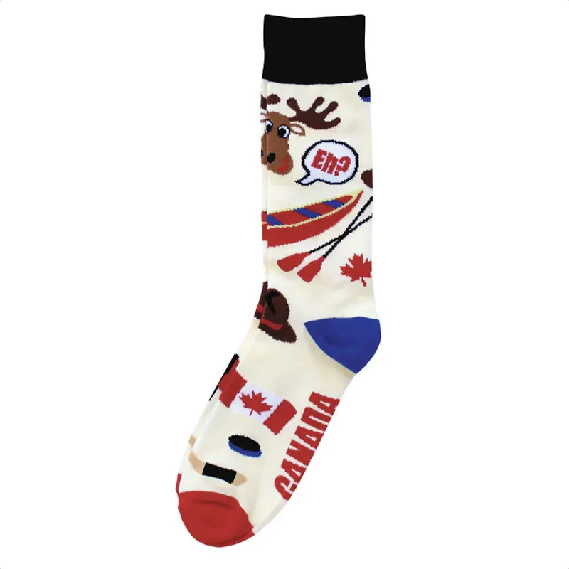 With scattered icons, these soft and comfortable fun Canada socks are great for any occasion all-year-round, from hockey to canoeing!