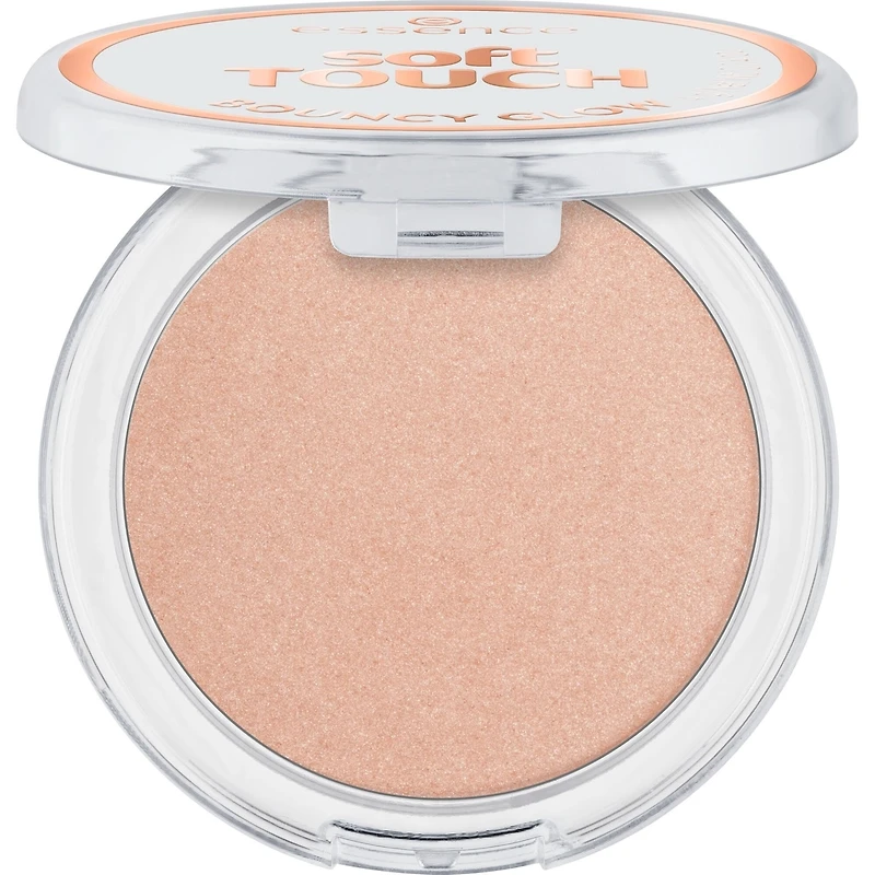 Glow like never before with essence soft TOUCH BOUNCY GLOW. This highlighter features a unique bouncy texture that melts into a silky, powdery finish on the skin, leaving behind a sheer, glass-like glow that looks effortlessly radiant and natural. A soft vanilla scent adds a sweet, subtle touch to your glow.