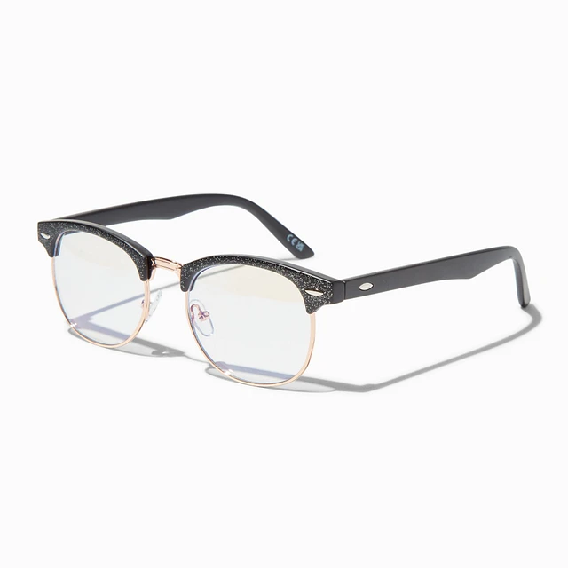 Solar Blue Light Reducing Black Glitter Browline Clear Lens Frames