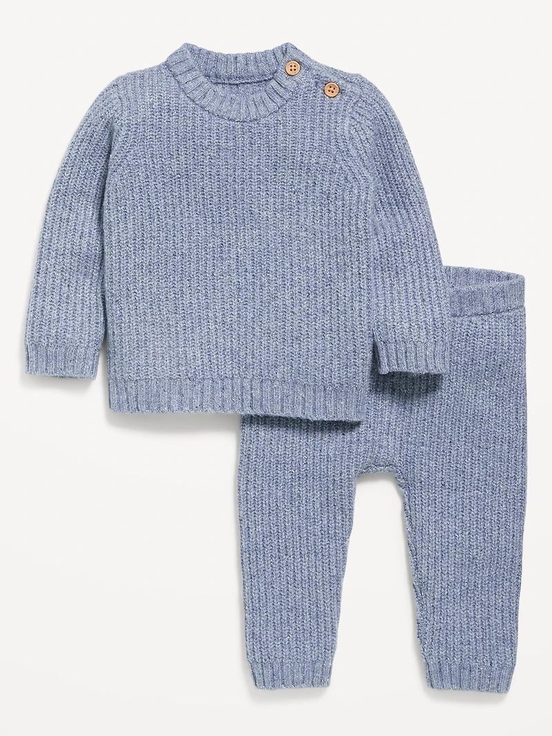 crew neck long sleeves buttoned placket at shoulder matching bottoms elasticized waistband set has relaxed fitmachine wash according to the care instruction label .