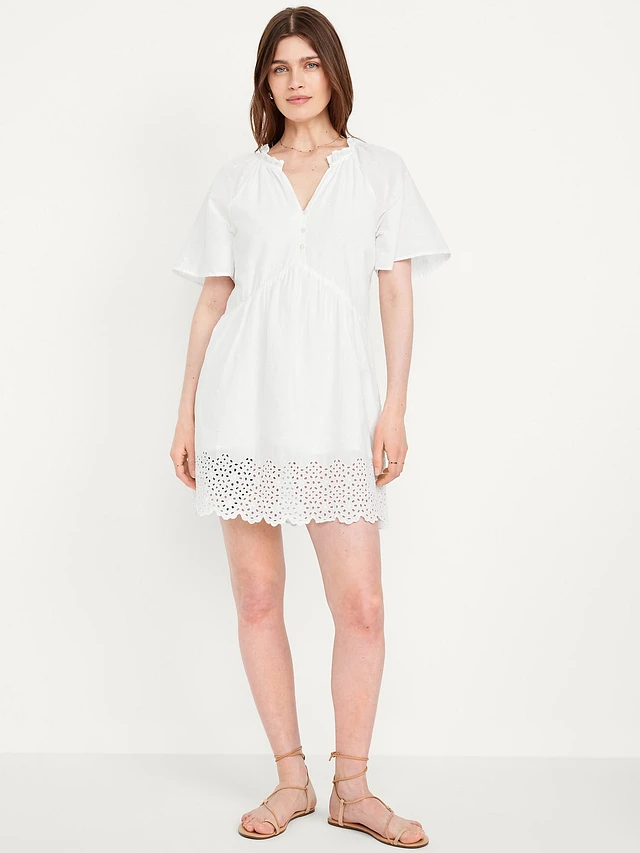 Split-Neck Crinkle Gauze Mini Swing Dress