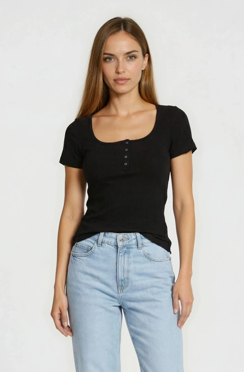 Square Neck Henley Top