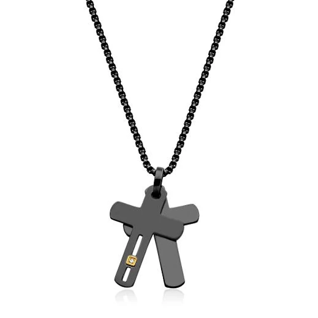SteelX Stainless Steel 24" Cross Pendant with Black Cubic Zirconia