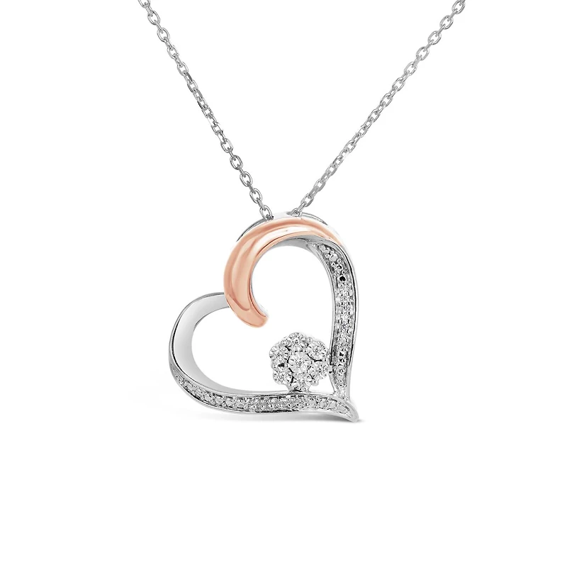 Sterling Silver & 10K Rose Gold 0.04CTW Diamond Heart Pendant