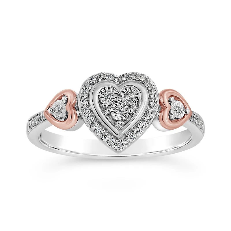 Sterling Silver & 10K Rose Gold Heart 0.11CTW Diamond Ring