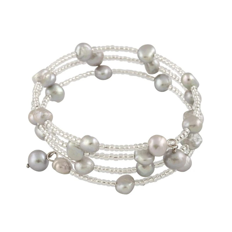 A triple row gray freshwater pearl coil bracelet in sterling silver