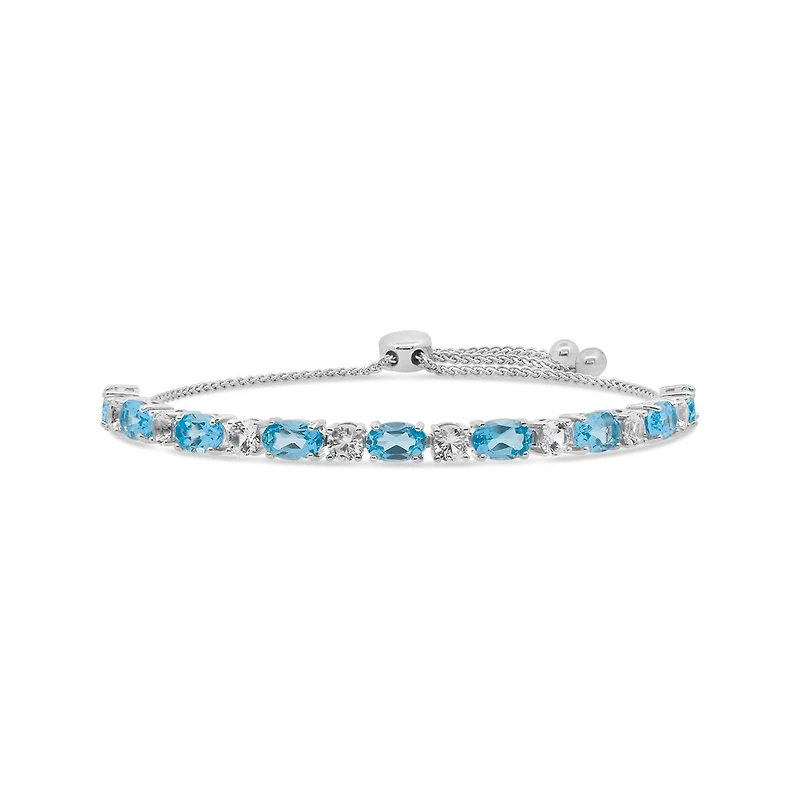Sterling Silver Blue Topaz & Created White Sapphire Adjustable Bracelet