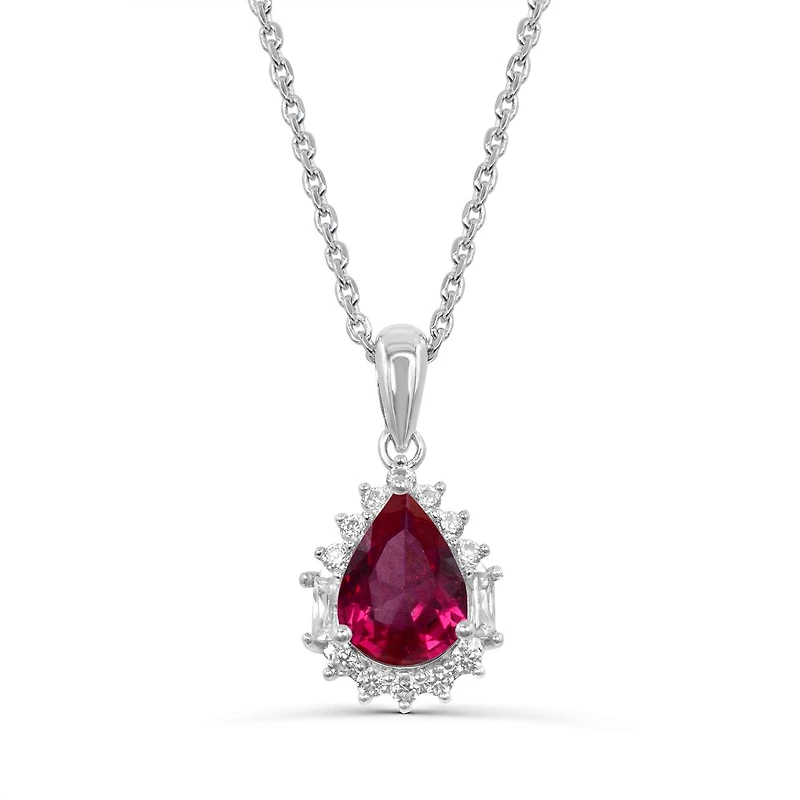 Crafted in sterling silver and gracefully suspended from an 18" chain, this pendant features a radiant created ruby paired with a sparkling created white sapphire. The deep red evokes passion and strength, while the white sapphire adds a touch of brilliance and clarity.
