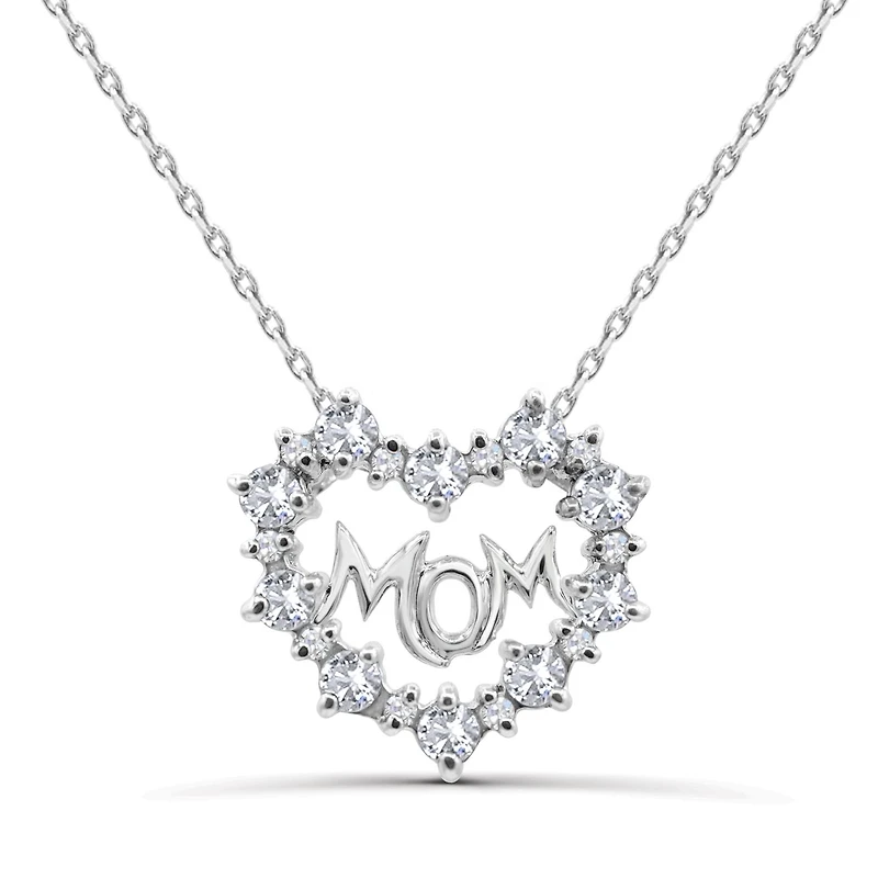 Sterling Silver Created White Sapphire Mom Heart Necklace