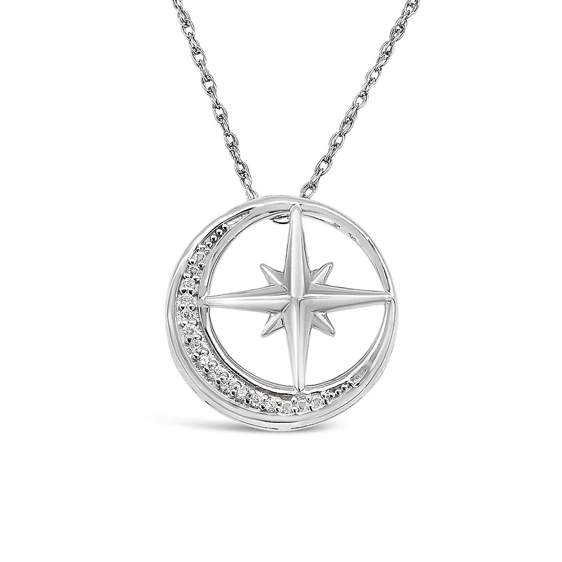 Sterling Silver Diamond Star & Moon Pendant