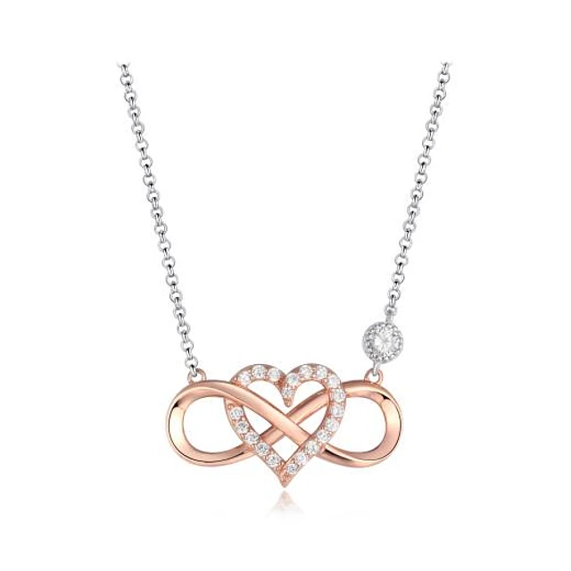 Sterling Silver Rose Plated Cubic Zirconia 19" Infinity Heart Necklace