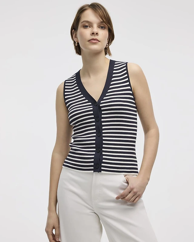 Halter-Neck Ribbed Tank with Crocheted Stitches