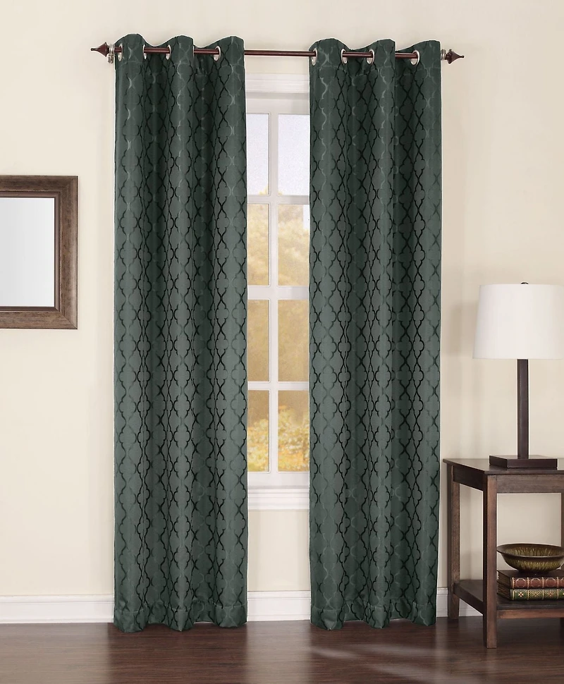 Sun Zero Thermal Grommet Embroidered Room Darkening Curtains. Thermal Back Saves Energy, Blocks Light, and Reduces Noise.