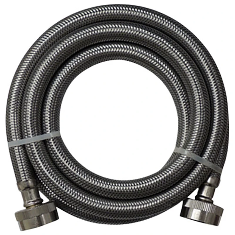 Braided stainless steel inlet hose provides a reliable water supply for most residential washing machines Features durable stainless steel over EPDM tubing for durability Straight female fittings with solid brass ferrules ensure a strong, secure connection Forged brass swivel adapters are designed to fit most hookups Includes ¾" GHT treated steel nuts for dependable performance Comes with standard hose washers for quick, reliable installation Universal connection system makes it easy to supply the washing machine with the necessary water source Compatible with part 3806FFSS and select models from major brands including Electrolux, Whirlpool, Bosch, Miele, LG, Samsung, GE, KitchenAid, Maytag, Amana, Haier, and more Kit includes all required parts for effortless installation, with no additional connectors needed