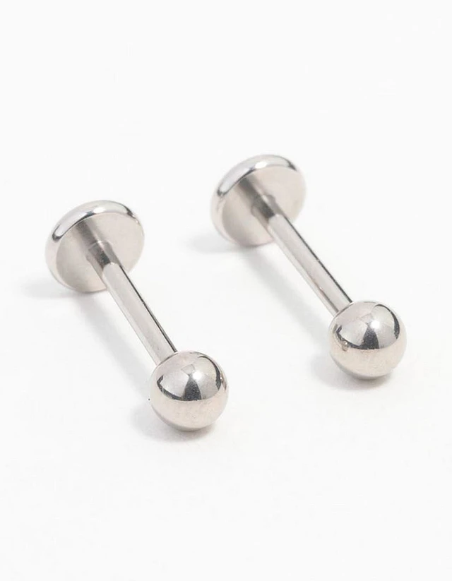 Surgical Steel Plain Ball Flat Back Earrings 2-Pack