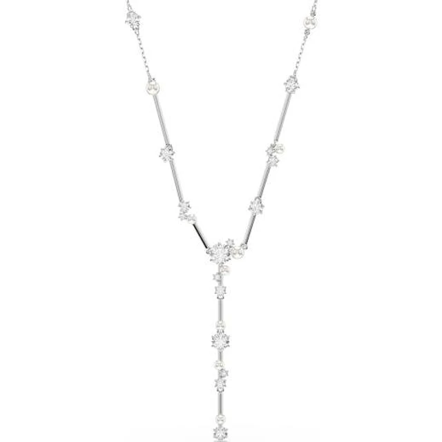 Constella Y necklace, Crystal pearl, Round cuts, White, Rhodium plated by SWAROVSKI