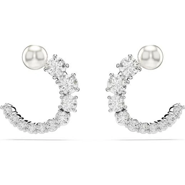 Matrix hoop earrings, White, Rhodium plated by SWAROVSKI