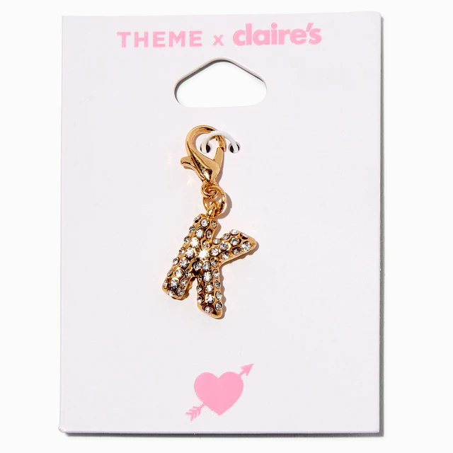 Chrysalis Cubic Zirconia "K" Initial Charm Adjustable Bangle in White Brass