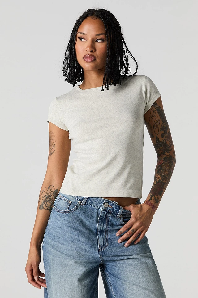 T-shirt ultracourt côtelé sans couture avec encolure carrée