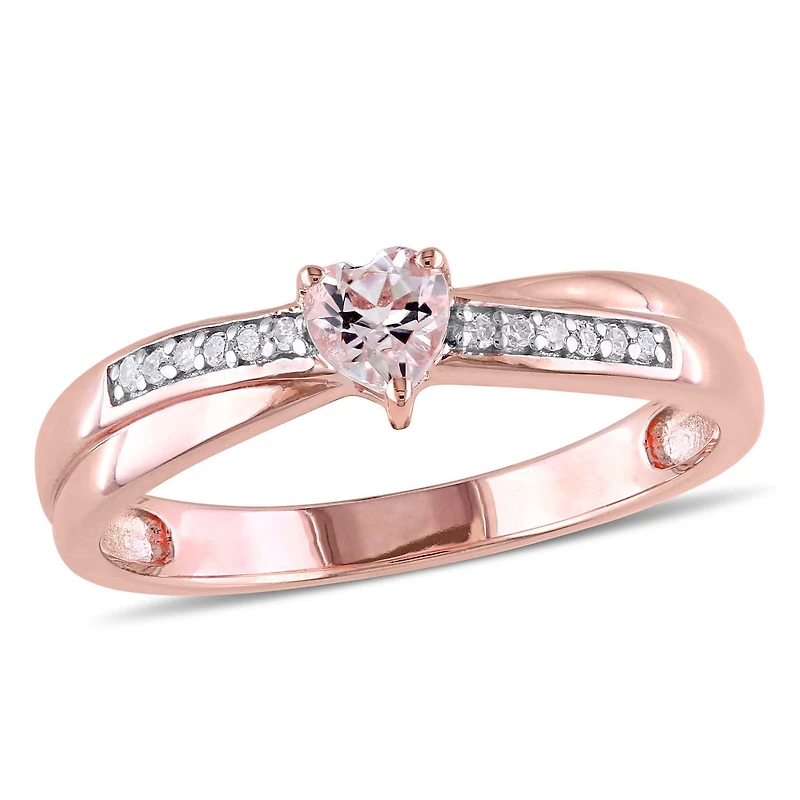 This pretty ring features a heart-cut morganite gemstone (4mm) in the center with a total of 12 twinkling round diamonds along the band. This ring is crafted in lustrous rose rhodium-plated sterling silver and is enhanced with a high polish finish. Tangelo Jewellery: A rainbow of gemstones is yours to discover with Tangelo. With thousands of styles from classic to trendy, you'll find the hue that's right for you. Adorn yourself with a burst of color from a gemstone. For every occasion in your colorful life.