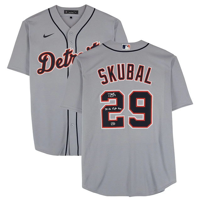 Tarik Skubal Detroit Tigers Autographed Gray Nike Replica Jersey with "24 AL Triple Crown" Inscription