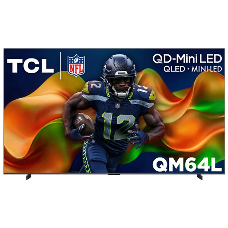 TCL QM64L Series Smart TV delivers breathtaking picture quality through its Halo Control System, Enhanced QLED and QD-Mini LED. Experience smooth motion, deep blacks and vibrant colours on this 4K UHD HDR display. Dolby Atmos sound elevates your home entertainment.