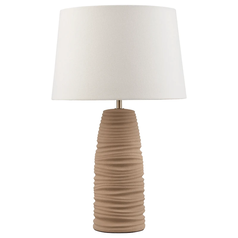 Brighten your home with this charming table lamp. Its textured ceramic base in a warm beige hue brings a cozy touch to any space. The soft fabric shade gently diffuses light, creating an inviting atmosphere perfect for relaxing evenings or productive work sessions. Whether placed in the living room, bedroom, or home office, this lamp adds both style and warmth to your décor. Enjoy the comforting glow and lovely design that make this lamp a delightful addition to your home.