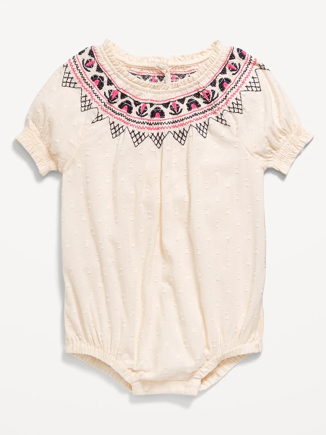 Textured Dobby Embroidered One-Piece Romper for Baby