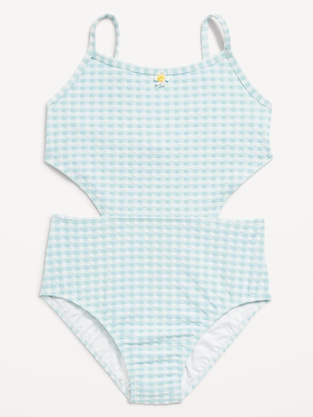 Textured Jacquard Side-Cutout One-Piece Swimsuit for Girls